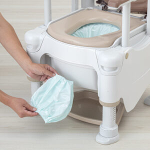 移乗動作、排泄、お手入れの3つを支えるマルチサポートトイレ。自動ラップで排泄物をフィルムで密封。